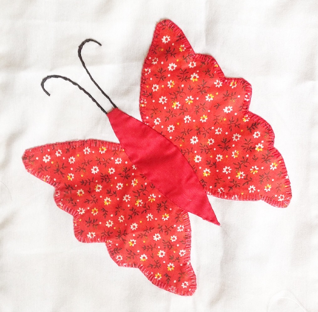 As someone who doesn’t applique, I’m a bit stumped right now on how to quilt this one.  There’s quite a bit of white space on the quilt that needs to be taken into consideration, but also what to do with those butterflies?  I think I’ll be doing a bit of research before I start in on quilting it.